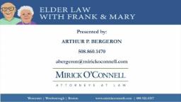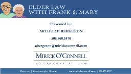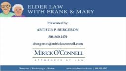 - Elder Law • Dealing with Your 70's